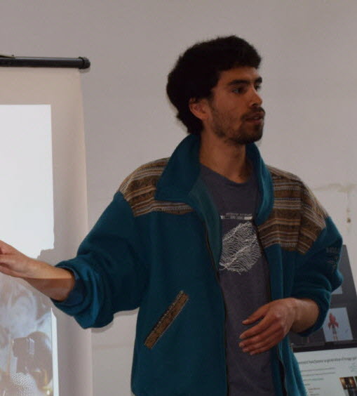 Équipée d’un capteur, la kinésphère agit comme une antenne capable d’interpréter la présence du public, son rapprochement et son touché. Envoyées en temps réel au logiciel Touchdesigner, les données traitées modifient des attributs de la vidéo mappée, y ajoutent des effets cinétiques et génératifs. En s’appropriant l’objet et les visuels, le public devient alors acteur.ice de la pièce. »