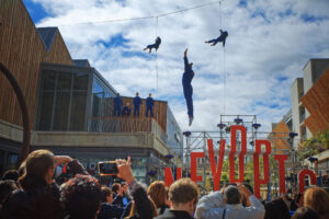 Description du projet : Inauguration d’une ancienne friche industrielle, réhabilitée avec des architectures en résonnance avec le patrimoine industriel. Le geste artistique est issue d’une collaboration à deux voix : l’agence LA VILLA en charge de l’inauguration globale, et la compagnie les IMPONDERABLES.